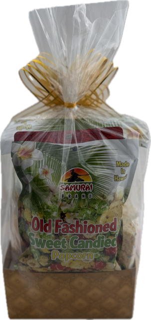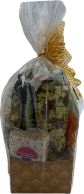 What's Inside: Furikake Popcorn, Old Fashioned Sweet Candied Popcorn, Pistachio Crunch, Dried Sliced Mango, Premium Mango Gummies, Aloha Kine Creem Crackers, and a Thick Birthday Cake Marshmallow Crispy Bar.